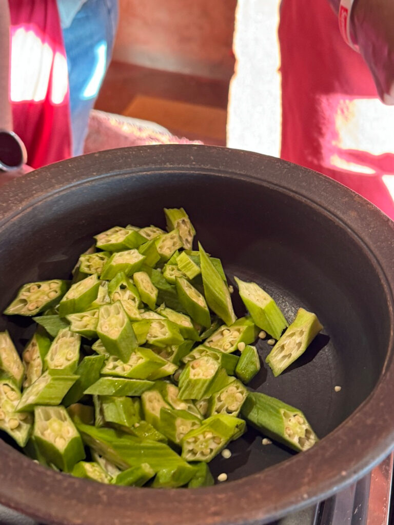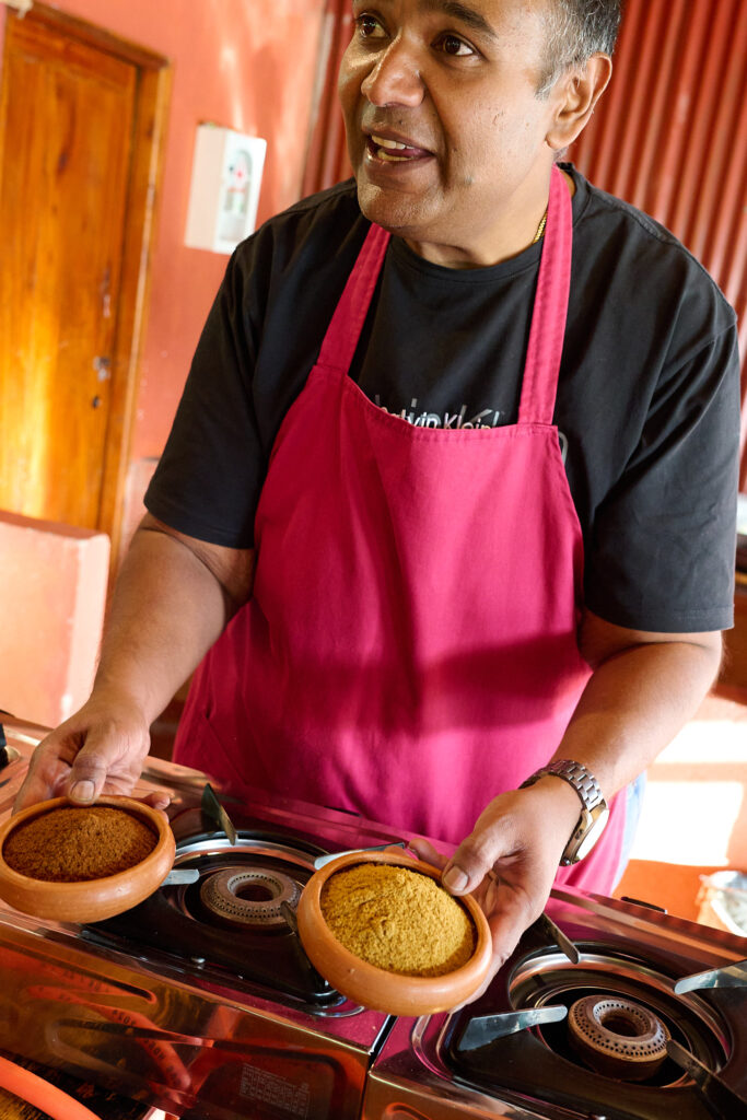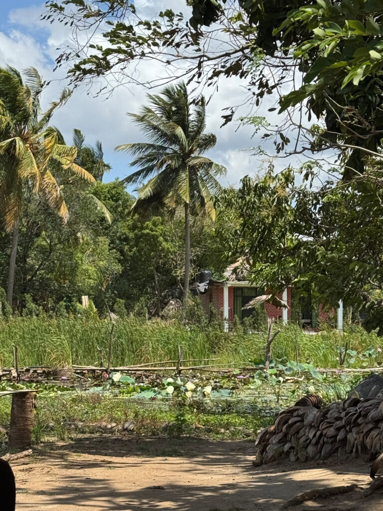 The class ran like a well-oiled machine, with everyone gently nudged into chopping, rolling, or stirring something. We learnt how to make coconut roti, a comforting dhal, a quick okra stir fry, and a few other homely dishes that felt wonderfully doable. Along the way we were taken through the fragrant world of Sri Lankan spices, the different curry powders that give each dish its personality, and the generous use of fresh coconut and coconut oil in just about everything. The 100 clove garlic curry was definitely a highlight. We bought some of his aromatic curry powders at the small on site shop, and I may have purchased an 80 cm stick of the most fragrant cinnamon I have ever smelt, the issue of transporting this and our growing excess baggage being a future problem.