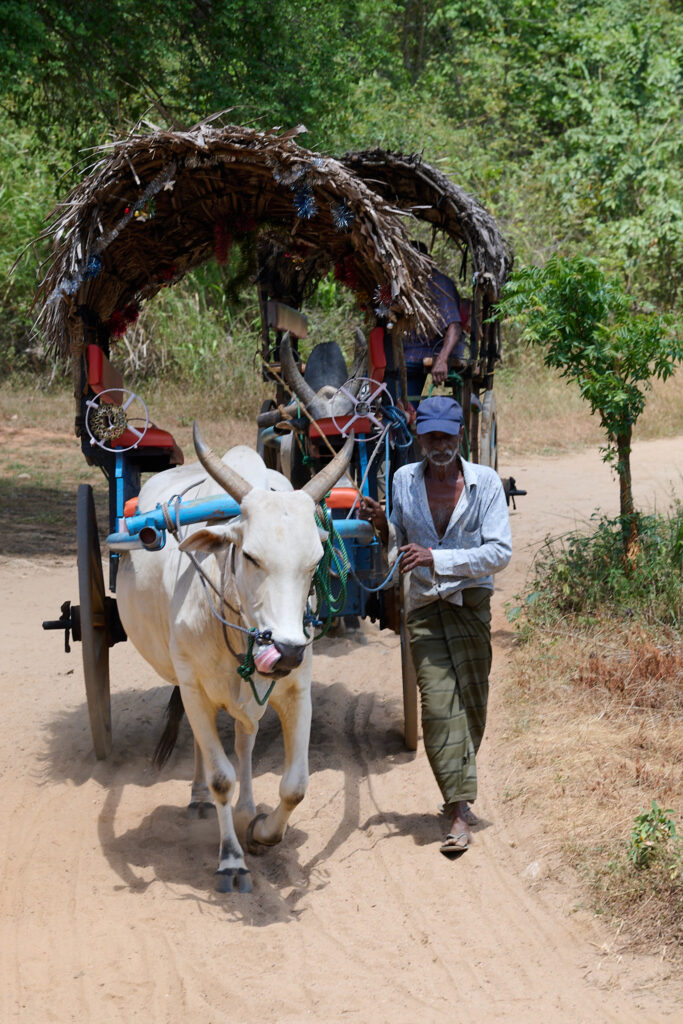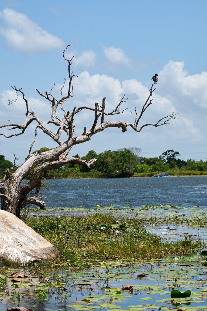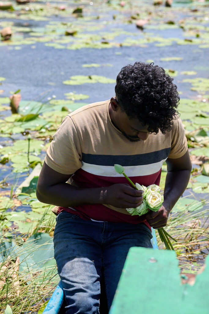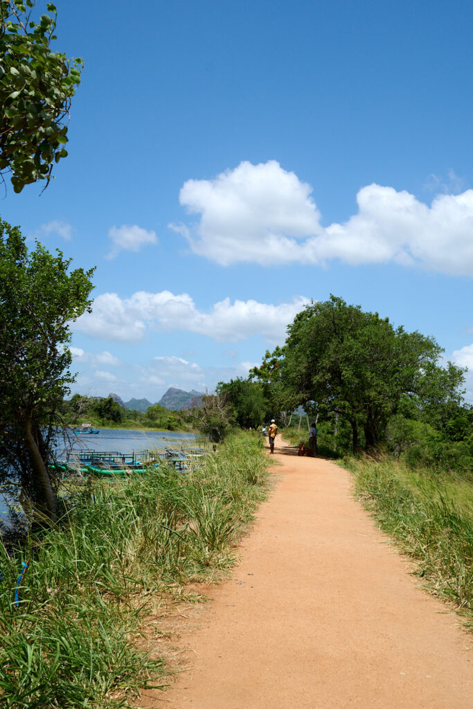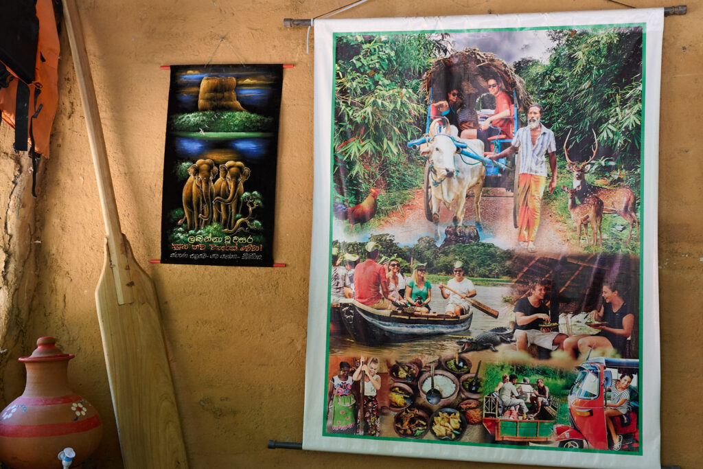 Our other cooking demonstration on this trip was a little different. In Sigiriya, my overwhelm and inability to say no steered us toward a different experience than one I would have chosen myself. The journey getting there was apparently a must do in Sigiriya and clearly a solid part of the tourist itinerary. After a short, bumpy trip in a traditional bullock cart, we crossed a small dam in a Sri Lankan fishing boat (oruwa) where the boatmen showed us how to fashion hats from lily pad leaves and then promptly decorated my daughter with bits of lily flower jewellery, a skill so inventive that I suspect we may never have occasion to use it again.