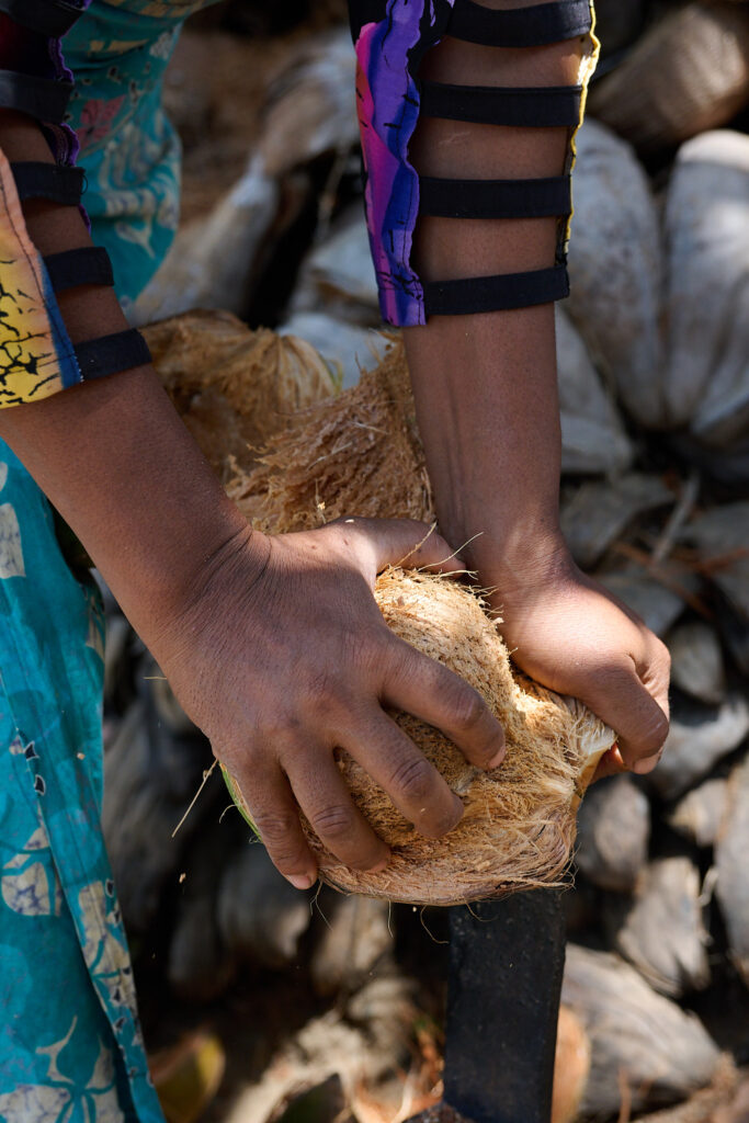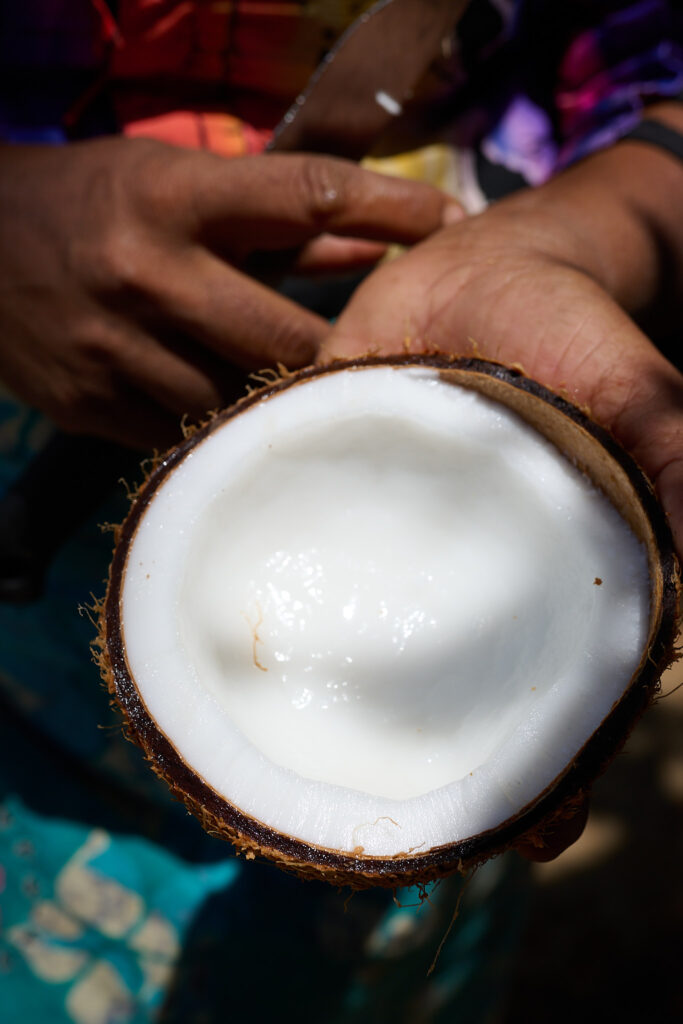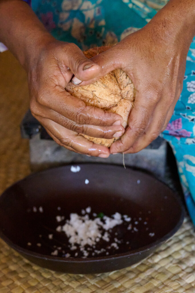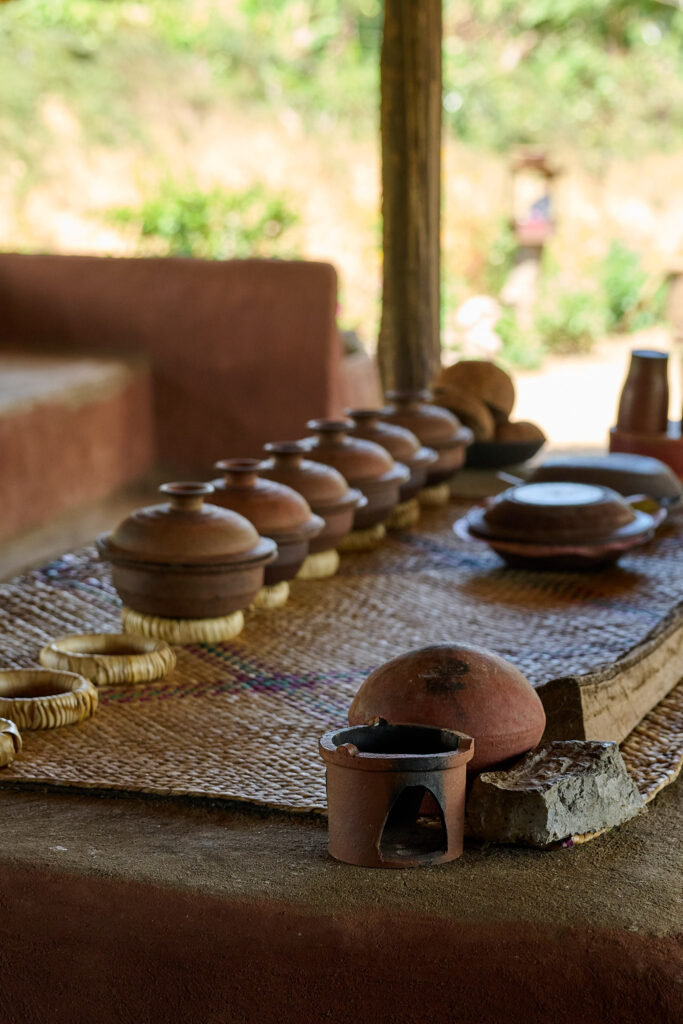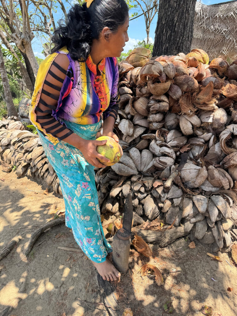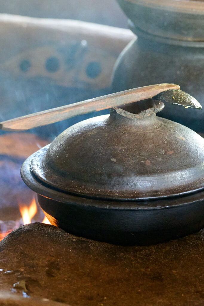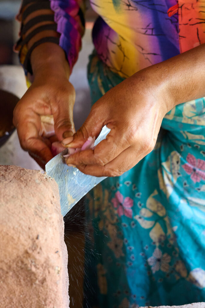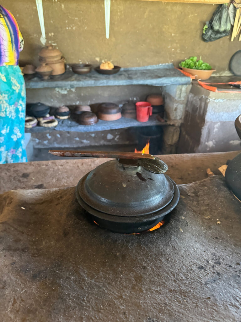 On our arrival, the preparations for lunch were already underway. I think the term “farm to table” aptly applies here. The vegetables were grown on site, right down to the rice, which was shucked in front of us. We prepared the coconut milk from scratch and then strong armed our way through rolling the sambol on a traditional miris gala, a flat stone slab with a pestle. Cooking was done over outdoor kitchen fires, with clay pots as the vessels, giving everything a smoky, earthy aroma.